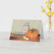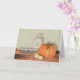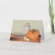 Nota para a tarte de abóbora apresenta torta desenhada por ratinho, ovos e farinha e desenho a lápis colorido de uma abóbora. Perfeito por enviar uma nota neste outono.