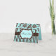 Este cartão de nota de agradecimento aqua azul, branco e floral damasco marrom com listras combina com o convite de casamento mostrado abaixo. Você também pode selecionar um tamanho 5x7.
