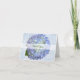Cartão de agradecimento de casamento de hortênsia azul. Uma grande flor de hortênsia redonda na frente com texto verde "obrigado" em uma "faixa" branca. Por dentro está em branco. Escolha o tamanho do cartão e ele virá com um envelope branco.