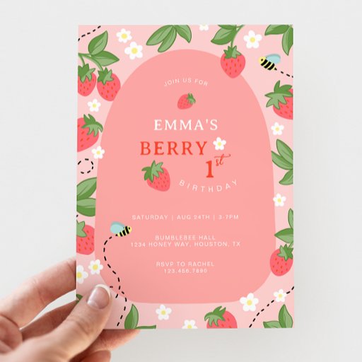 Envie uma nota doce de gratidão com este cartão de agradecimento de morango Berry Sweet! Projetado com morangos desenhados à mão e uma abelha zumbindo, este cartão de agradecimento personalizado é a maneira perfeita de agradecer aos convidados por celebrarem o dia especial do seu pequeno.