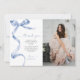 Expresse sua gratidão com estilo com este elegante cartão de agradecimento com laço, apresentando um moderno laço azul e espaço para uma foto pessoal. Perfeito para aniversários, chá de noiva ou qualquer ocasião especial, este design exala sofisticação atemporal. Personalize com sua mensagem sincera e detalhes para criar um presente memorável para seus destinatários.