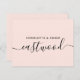 Um delicado cartão de nota cor-de-rosa com nome de casal suave e elegante, no tipo vintage sans serif, contrastado com uma letra de script de estilo manuscrito. Cartaz de papelaria de casamento elegante para recém-casados ou cônjuges longevos. Misturando vintage e estilos modernos. Solicite maiores quantidades para obter maior economia.