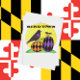Este cartão de nota de vazio mostra algum orgulho de Maryland, com um Raven em uma abóbora colorida por orioles e um Oriole em uma abóbora colorida por ravens, com um balde de Susanos de Olhos Negros entre eles.