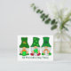 Cartão de Nota de Convite para Gnomies de Dia de São Patrício. Três gnomos vestidos com a melhor Rua. Informações da festa no verso. O tamanho do cartão de nota é para os que estão em um orçamento.