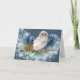Bonita impressão artística de uma majestosa coruja branca de neve com flocos de neve e pínus em uma nota de 5"x7".
