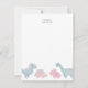Cartão de nota de papelaria infantil fofo com ilustração desenhada à mão de dinossauros rosa pastel.