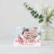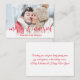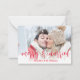 feliz na moda elegante e casada, letra vermelha, feriado fotográfico recém-casados Nota Cartão com dois lados, no verso desejos de feriado.