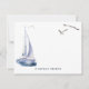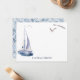 Este cartão náutico personalizado de papelaria personalizado apresenta um iate e gaivotas em aquarela. O verso apresenta um fundo branco com padrões geométricos em azul-indigo. Você pode encontrar produtos correspondentes na minha loja.