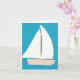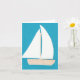 Este cartão de nota foi desenhado com a minha representação de um veleiro branco sobre um fundo turquesa.