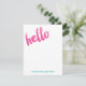 Um simples cartão de nota de papel de carta personalizado com estilo "olá" de script de pincel rosa brilhante. Personalizado no fundo com sua nota. Uma adição perfeita para qualquer mesa.