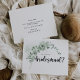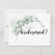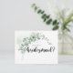 Este clássico cartão de nota de proposta de eucalipto é perfeito para um casamento russo. A design apresenta lindas folhas verdes de eucalipto com aquarela. Mude a redação e use estas cartas para pedir a todos os membros do seu partido noivo; madrinha de casamento, matrona de honra, damas de honra, dama de honra júnior, florista, homem melhor, padrinhos de casamento e muito mais!