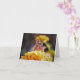 Um belo cartão de nota com uma Lady Butterfly pintada com iluminação traseira no topo de uma Zinnia.