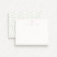 Um charmoso cartão de nota de berçário adornada com um delicado padrão de flores silvestres de cottagecore, em rosa mole e azul no verso. A frente apresenta um layout minimalista com ilustração de arco rosa e roteiro elegante, perfeito para mensagens sentidas ou notas especiais.