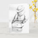 Cartão de nota com o apicultor cinzento do tom que trabalha sua colmeia