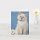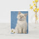 Um cartão de nota com uma foto de um gatinho do ragdoll contra um fundo azul