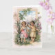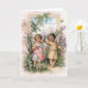 Cartão de nota do vintage/Victorian. Dois anjos pequenos bonitos em um jardim! Cartão de nota perfeito para alguma ocasião!