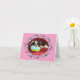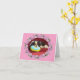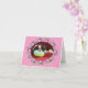 Este é um cartão de nota rosa em branco, apresentando uma fotografia original do mais fofo Cavalier King Charles Spaniel tricolor, apoiando a cabeça em um brinquedo favorito, cercado por flores cor-de-rosa.