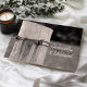 Personalize o cartão de nota de estoque plana de casamento do país, casual mas clássico, Posto de cerca rural, como desejar. Estas cartazes de anotações personalizadas e charmosas apresentam uma fotografia em fazenda preto e branco de uma cerca de madeira postada com arame farpado.