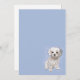 Cartão de Nota Azul Pálido que retrata uma pintura de reprodução adorável de um maltês por C. Saxe