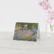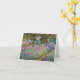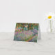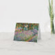 Cartão de nota Monet Irises. Pintura a óleo na canvas desde 1900. Junto com seus famosos lírios de água, Monet repintava frequentemente os irlandeses roxos em seu jardim em Giverny. O uso suave de roxo flui bem ao longo do caminho do jardim com árvores ao fundo. Um presente de excelente para fãs de Monet, impressionismo, irlandeses e arte francesa.