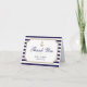 Personalize este moderno casamento náutico personalizado moderno na moda. Obrigado Nota. Design com branco e azul riscado, com elementos dourados falsos e âncora, definidos como modelo para uma fácil personalização. O texto da dentro é: "Nosso casamento não estaria completo sem o apoio de nossa família e amigos. Obrigado por compartilhar nosso dia! Amor, Jessica e Stephen. Você pode facilmente mudá-lo para o seu. Convocação de Casamento, RSVP, Cartões de Programa, Cartão de Informações de Convidado, Convite de Janto de Ensaio e Cartões de Agradecimentos podem ser encontrados em uma Coleção de Casamentos Náuticos de Na moda.