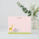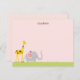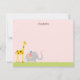 Elefante bebê, girafa e passarinho num fundo cor-de-rosa fazem uma carta de nota adorável. A parte de trás do cartão tem um padrão de margarida. Ilustrações originais de Boatman Geller.