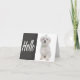 Os cartões de saudação são uma forma excelente de mostrar apreço, ou de deixar amigos e familiares saberem o quão especiais eles são quando, às vezes, as palavras ficam sem palavras. Este bonitinho de noteca apresenta um feliz cachorro malvado branco parado em um fundo branco nítido. Uma saudação Hello é realçada contra um fundo de quadro negro.