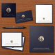 Faça uma impressão memorável com o nosso design de cartão de nota clássico. A rica borda azul impressão e o emblema de ouro escovado oferecem um toque refinado, perfeito para advogados, assessores, planejadores imobiliários e empresas de serviços profissionais. Use-o para correspondência de clientes, notas de agradecimento ou comunicações importantes.