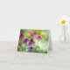 Closeup de violetas e flores amarelas, foco suave. interiores do cartão deixados em branco para mensagem pessoal.