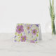 Um cartão de nota/saudação dobrado com desenho floral roxo e lilás. Pode ser personalizado.