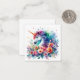 Cartão de Arte Fantasia. Belo Unicórnio em cores brilhantes com flores vivas. Este cartão é vazio de dentro para sua própria mensagem.