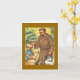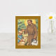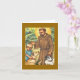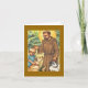 Cartão de nota vazio que representa St Francis de Assisi abençoar o melhor amigo do homem.