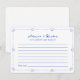 Dê aos seus hóspedes a maneira perfeita de compartilhar conselhos e desejos sinceros com este elegante cartão com tema de concha. Projetado com uma refinada borda pontilhada e delicadas ilustrações em azul-litoral, traz um toque de charme à beira-mar para o seu casamento ou chá de panela. O simples layout e design de eterno o tornam ideal para tudo, desde cerimônias de praia até recepções de Cabo Cod. Personalize os nomes para corresponder ao seu evento para que os na moda de hóspedes significativos adorem preencher.