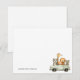 Este cartão de notas infantil apresenta um design limpo e minimalista no canto inferior direito de um velho caminhão verde-claro carregando um grupo alegre de animais, incluindo um urso, leão, girafa, raposa e um urso menor. O resto do cartão está em branco, criando uma estética simples e elegante.