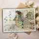 Suave e romântica, com ventos esperançosos voando para cima, esta carta celebra a beleza da figura e os detalhes da roupa, fundo e flores. Esta ilustração vintage é de Annie French.