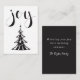 Placa de Nota de Árvore de Natal Preta e Branca Uma design de árvore de Natal simples, moderna e na moda com cartão festivo de "alegria". O verso deste cartão de nota tem uma mensagem personalizável. Personalize este cartão com o sobrenome da sua família. Perfeito para usar como etiqueta de presente ou anexar aos biscoitos caseiros e guloseimas que você está dando neste feriado.