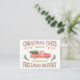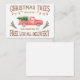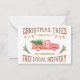 Nossa placa de publicidade "Árvore de Natal" favorita que já projetamos. Ela contém duas ótimas fontes complementares, elementos de arte clip watercolor, o icônico caminhão vermelho vintage, estilo antigo, luzes de árvore de bulbo grande e alguns galhos para enquadrar a parte inferior. Ela diz: "Árvores de Natal, Cortadas Frescas Diariamente, Família Proprietária Desde 1972, Entrega Local Grátis". Por Monkey Business Graphic Design, julho de 2020.