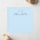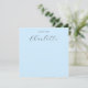 Esta placa de anotação apresenta seu nome em uma caligrafia de script manuscrita "note from" em um fundo azul.