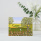 A note card with a beautiful image of a nature scene: A bird sitting on a weathered fence, wildflowers growing around the fence, a farmer on a tractor, working his land, trees with leaves, and farmland with various colors. Original artwork by W.B.