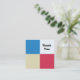 Diga um na moda 'Obrigado' com esta placa moderna de bloqueio de abstrato. A frente do cartão é dividida em quatro seções quadradas, de cor azul médio, creme, vermelha e azul pálido. No verso, o cartão é branco para você escrever sua própria mensagem, com uma borda dividida nas quatro cores acima. O estilo simples e contemporâneo é certamente uma impressão de destaque.