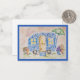 This greeting card features a charming blue camper illustrated in a whimsical, storybook style. The camper is painted in a cheerful cobalt blue with rounded edges, playful details, and tiny windows glowing with light. Surrounding it are an assortment of potted plants—terracotta pots and painted ceramic planters—overflowing with leafy greens, trailing vines, and bright blossoms.--everything you need to call your place "home".