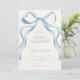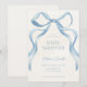 The minimalist layout and classic typography add a refined touch, while the soft blue tones make it ideal for a baby boy shower or a gender-neutral celebration. The airy background allows the bow to shine as the centerpiece, giving the invitation a modern yet timeless aesthetic.