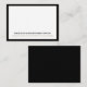 Faça uma impressão duradoura com nossas placas de nota simples de negócios brancas com borda negra. Este cartão de nota profissional mostra o nome de sua empresa em tipografia negra clássica, enquanto a área abaixo fornece espaço para seu endereço, informações de contato ou texto personalizado em tipografia elegante de ouro. O espaço em branco para a sua nota é enquadrado em preto para um toque profissional. A parte traseira da placa é preto estável, adicionando ao seu apelo de eterno.