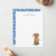 Cartão de nota personalizado bonito com a ilustração desenhada manualmente de um cão labrador que se recupera com um osso na boca no fundo. No topo diz "uma nota de". Você pode personalizar este produto adicionando seu nome. Excelente para escritório ou uso pessoal.