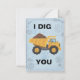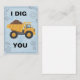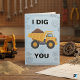 Envie uma carga de amor com este cartão de cumprimentos "Eu Cavou Você" cheio de trocadilhos! Com uma encantadora ilustração de um caminhão basculante amarelo transbordando de terra contra um fundo de planta e engrenagens, este cartão é a maneira perfeita de mostrar a alguém especial o quanto você se importa. É uma escolha ideal para o Dia dos Namorados, um aniversário de casamento, um aniversário ou simplesmente porque sim. O design divertido e o trocadilho inteligente com tema de construção tornam-no um sucesso entre crianças, entusiastas da construção e qualquer pessoa com senso de humor. O interior está em branco para a sua mensagem pessoal. Vem com um envelope branco correspondente.