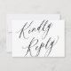 O cartão de nota rsvp de resposta ao casamento do barato preto e branco minimalista moderno, com envelopes OPTION, incluía um script de caligrafia em negrito com tendência de chic. ++++++++++++ Diferentes tamanhos disponíveis. ++++++++++ Fácil de personalizar com seus detalhes! Adequado para casamentos clássicos clássicos com na moda romântico elegante.