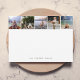 Um design de nota de colagem de fotos mininalista com um nome clássico de família tipográfica em preto sobre um fundo branco limpo e uma fileira de 5 fotografias que você pode carregar facilmente! O papel de carta personalizado perfeito que é fácil de personalizar para qualquer ocasião!