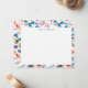 A colorful, watercolor butterfly pattern is on the front and back of this note card, you can easily customize the dark blue typography at the top of the card with your name.