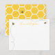 Conjunto de cartões de nota personalizados com abelhas fofas voando e um padrão de colmeia no verso do cartão.