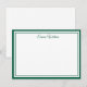 Custom name Note Card shown in white with a hunter green color double border trim.